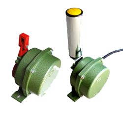 当胶带运输机现场发生紧急事故时,可拉动系于摆臂上的钢丝绳,使摆臂旋转而带动机内凸轮并感应微动开关,发出停机信号。